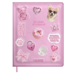 Дневник школьный 1-11 кл кожзам с наклейками Стикеры на розовом