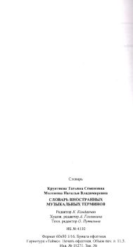 В связи с распространением музыкальной терминологии на различных европейских языках переводные словари приобретают в наше время немаловажное практическое значение. К этой категории принадлежит и данный словарь. В нем содержатся наиболее распространенные иностранные термины, применяемые в нашей музыкальной практике в иноязычном (латинском) написании, и дается краткий перевод их на русский язык. Словарь предназначен для музыкантов-профессионалов - исполнителей, композиторов, теоретиков, историков, педагогов, учащихся и широкого круга любителей искусства.